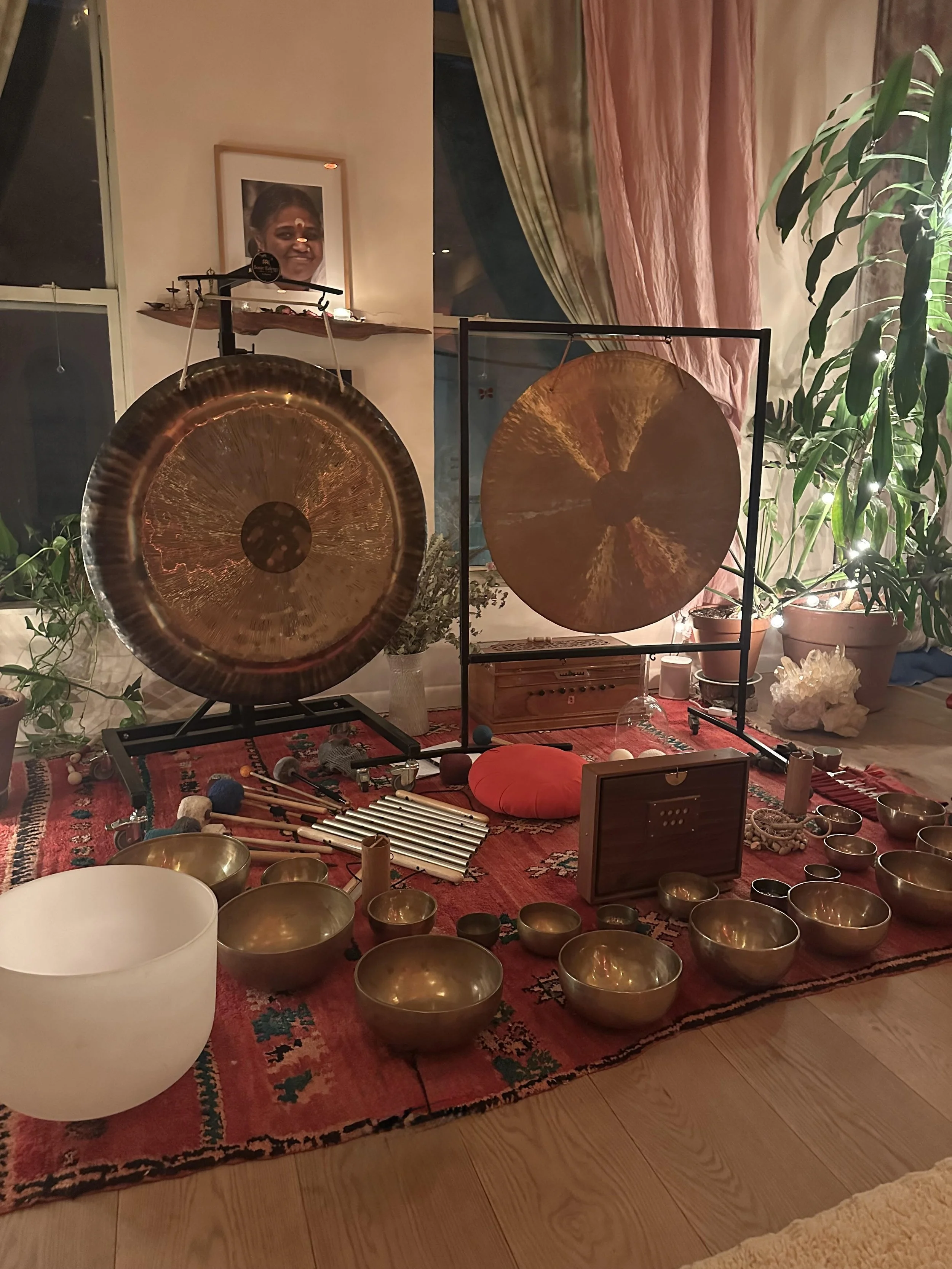 with bowls, tuning forks, voice, chimes or gong