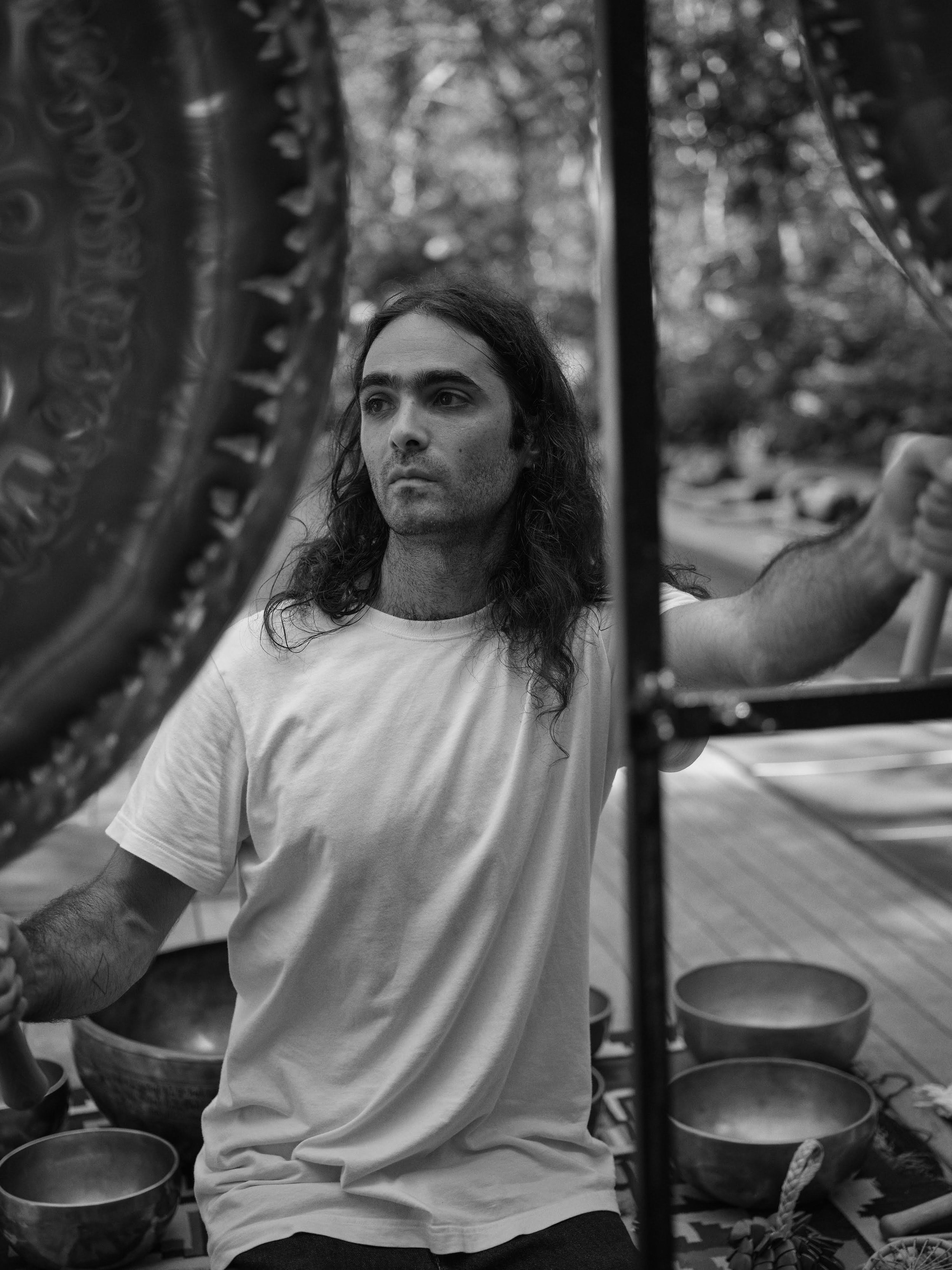 Samer Ghadry is a Brooklyn-based dad, musician, and sound healer. With over 25 years as a drummer and singer, and a sound healing practice that began in 2018, he brings informed experience to his work. Originally from Maryland and Virginia, Samer studied Sociology at Brown University while pursuing music at every opportunity. He has recorded and toured with Matthew Dear, Angel Deradoorian, and Dave Harrington, and was a 2022 Music Resident at Pioneer Works. His discography includes several albums of experimental drone-based music, and he has contributed to major works like Alanis Morissette's Storm Before the Calm and the score for the film Everything Everywhere All at Once by Son Lux.